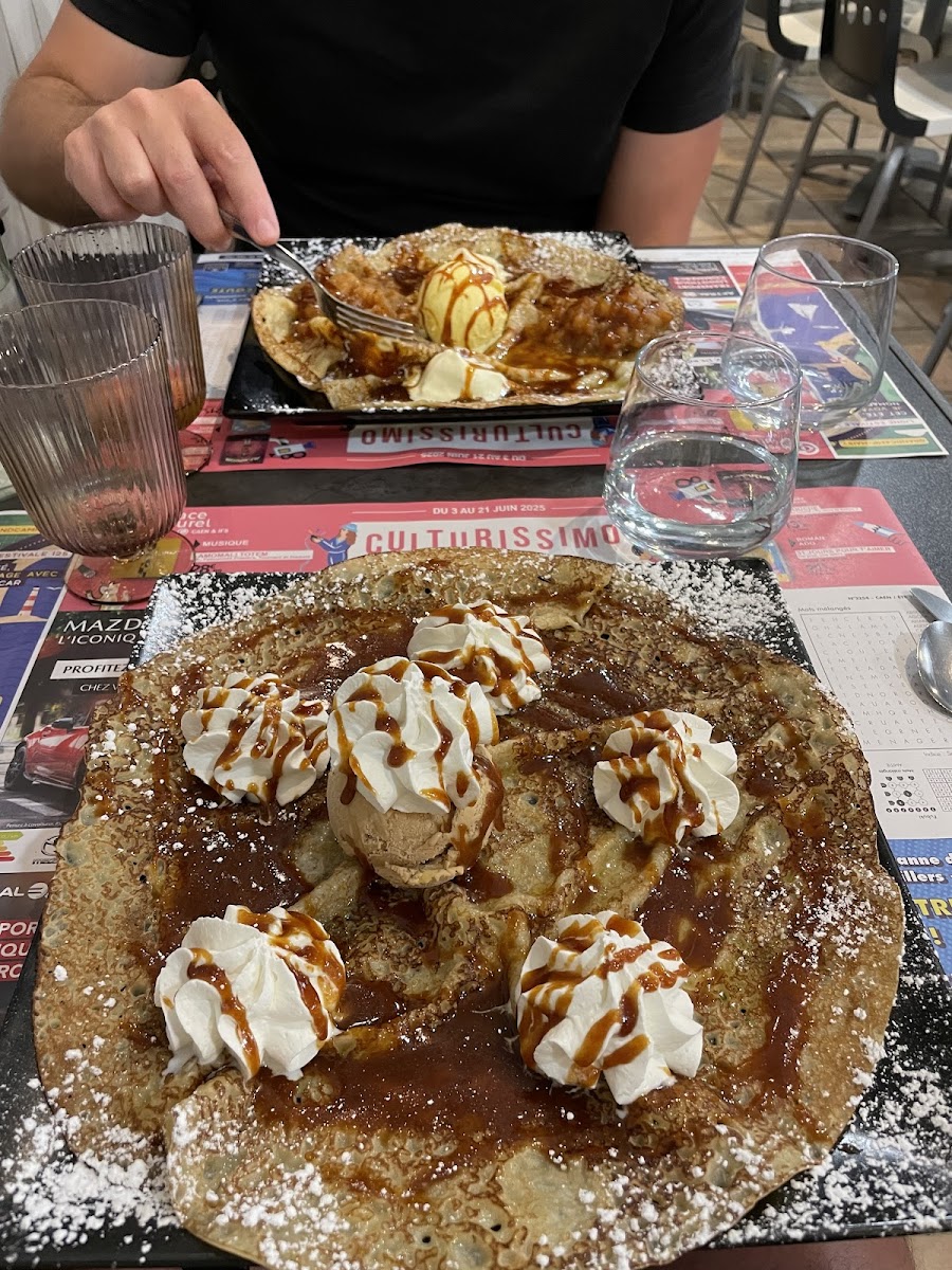 Another menu favorite that adds a sweet finish to the meal is the Caramel Liégeois. Served as a comforting dessert, it combines creamy textures with deep caramel flavor, making it a popular choice among guests who want something indulgent without feeling overly heavy. After a savory crêpe or daily special, it’s exactly the kind of treat that rounds out the experience.